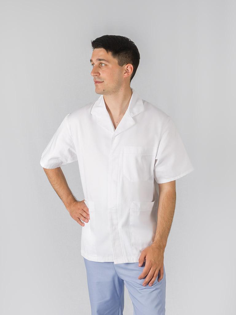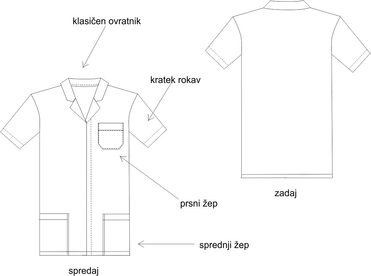 Moška tunika, ki navdušuje s klasičnim izgledom in krojem. Zapenjanje je na pritiskače, ki so skriti. Tunika ima klasičen ovratnik, kratke rokave, dva našita žepa spredaj in en prsni žep.